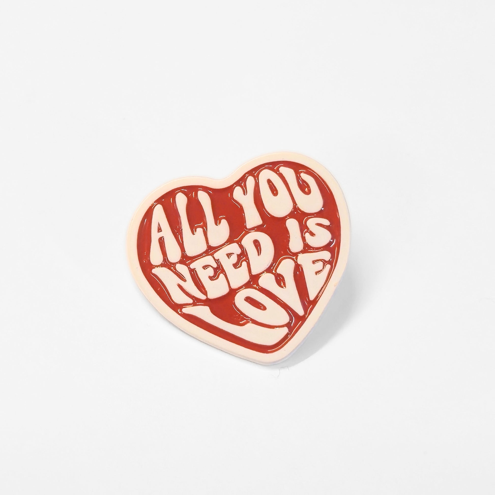 Share the love! Our heart-shaped "All You Need Is Love" enamel pin is a vibrant and iconic tribute to peace, love, and the enduring message of The Beatles. With its bold red background and matte white lettering, this pin is a classic statement piece for spreading positive vibes.
