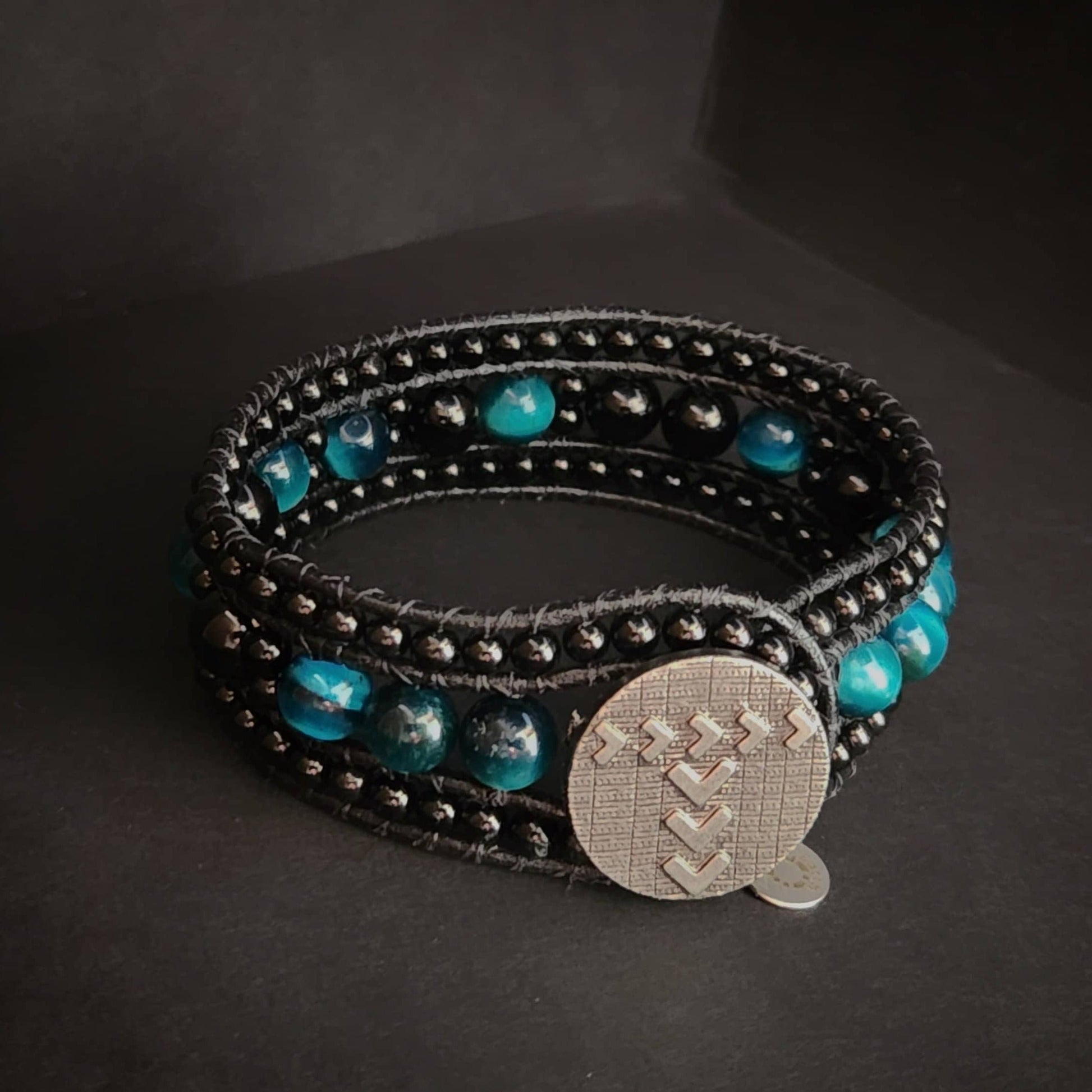 Designed for the rigours of daily wear, this cuff is hand-woven using resilient black leather and anchored by a vintage-style metal button for a secure, classic closure. The combination of Tiger’s Eye and Tourmaline ensures a sturdy, tactile piece that maintains its integrity and rich detail through every adventure. Due to the precise nature of Morse Code translation, character counts are strictly limited to ensure the integrity of the design and a comfortable fit on the wrist.