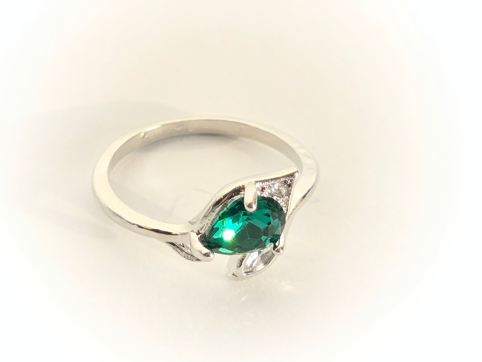 Upgrade your style with our stunning Emerald & Silver Leaf Ring. Made with a sparkling emerald rhinestone and delicate silver leaf design, this ring will add a touch of elegance to any outfit. Stand out and make a statement with this unique and sophisticated accessory.