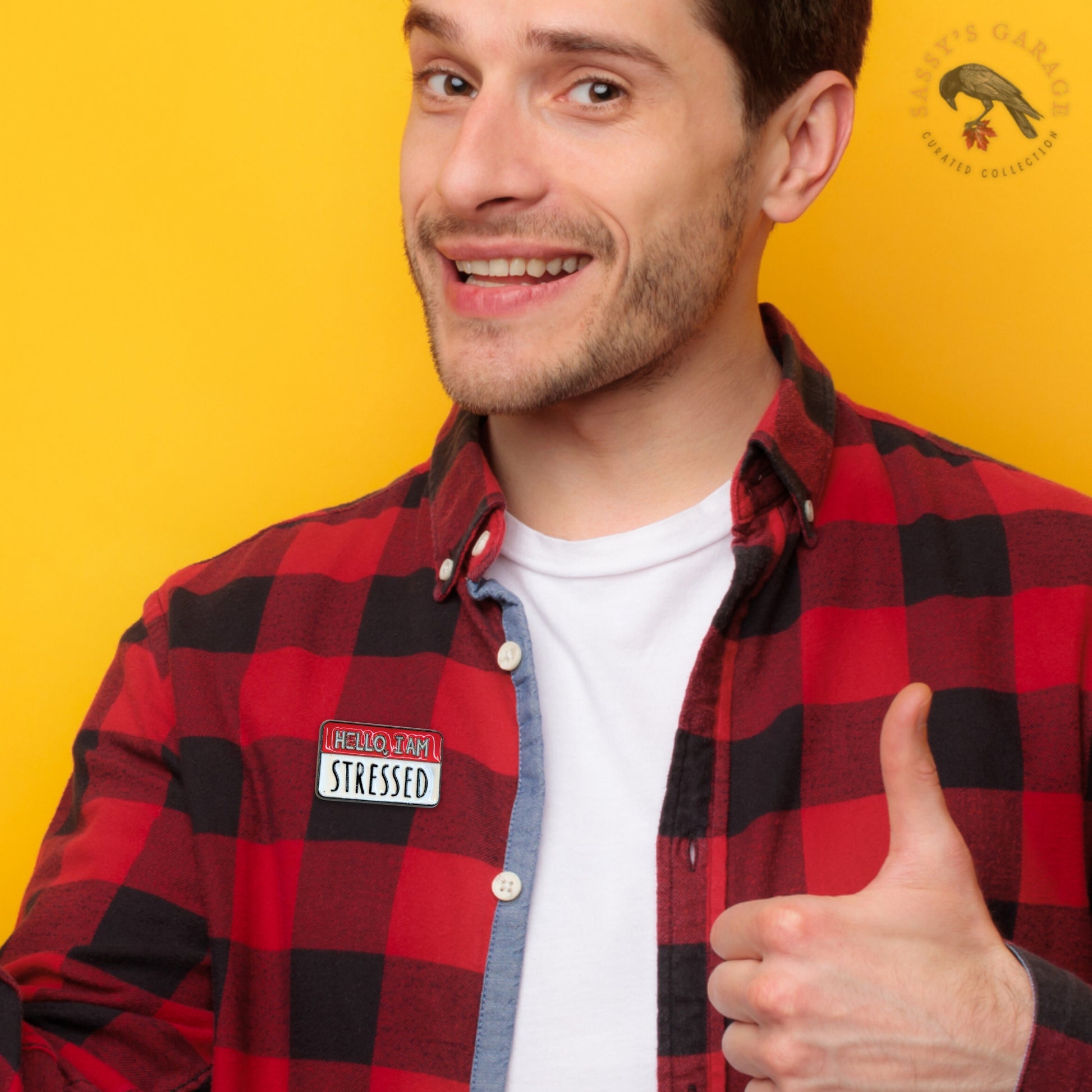 Cut straight to the chase! This brilliantly relatable enamel pin is designed like a classic name tag, boldly proclaiming: "HELLO, I AM STRESSED." With its clear red and white background and crisp black lettering, it's the perfect, witty way to communicate your current state without having to say a single word. A must-have accessory for your work bag, lanyard, or jacket for anyone who navigates a busy schedule and appreciates a bit of shared humour about life's demands.