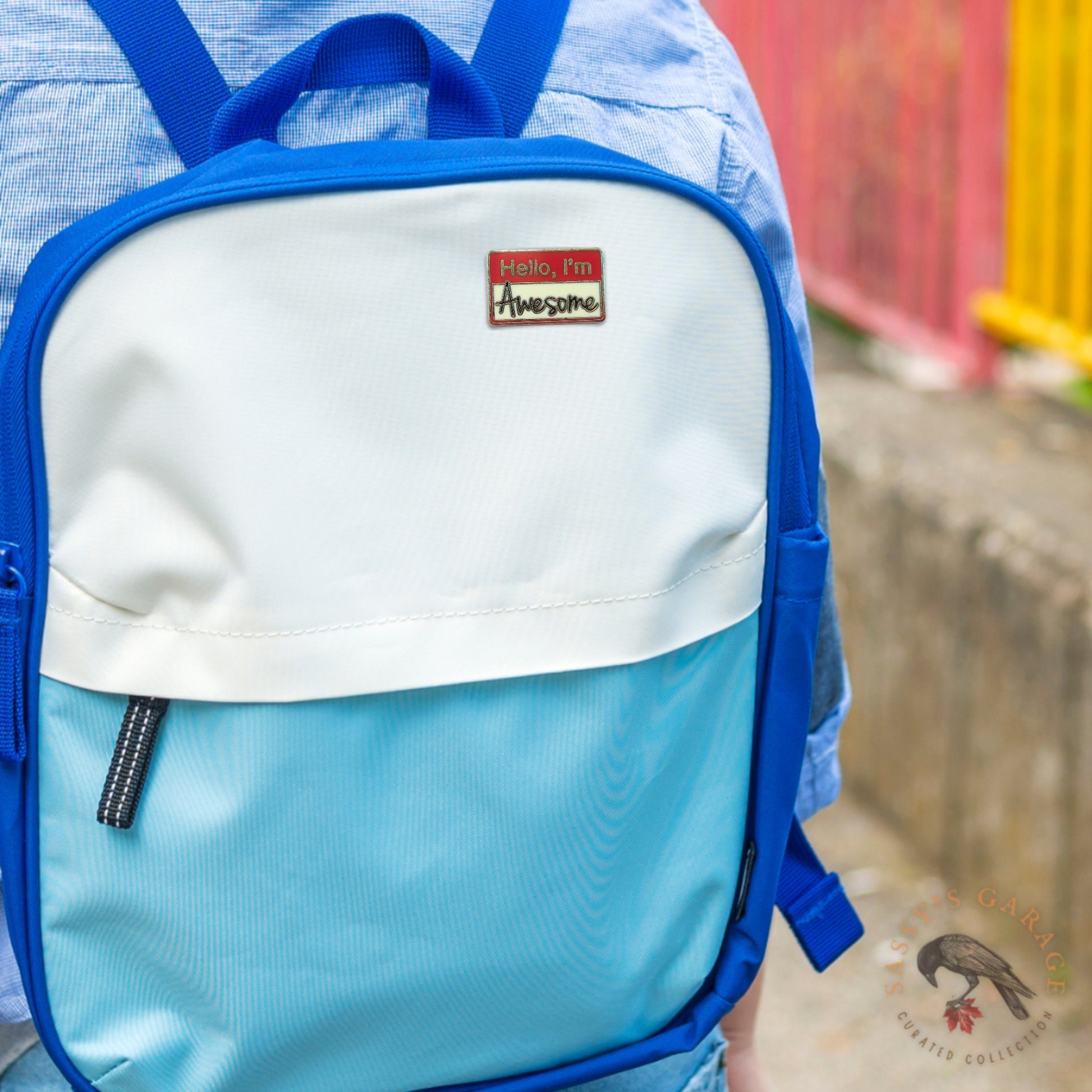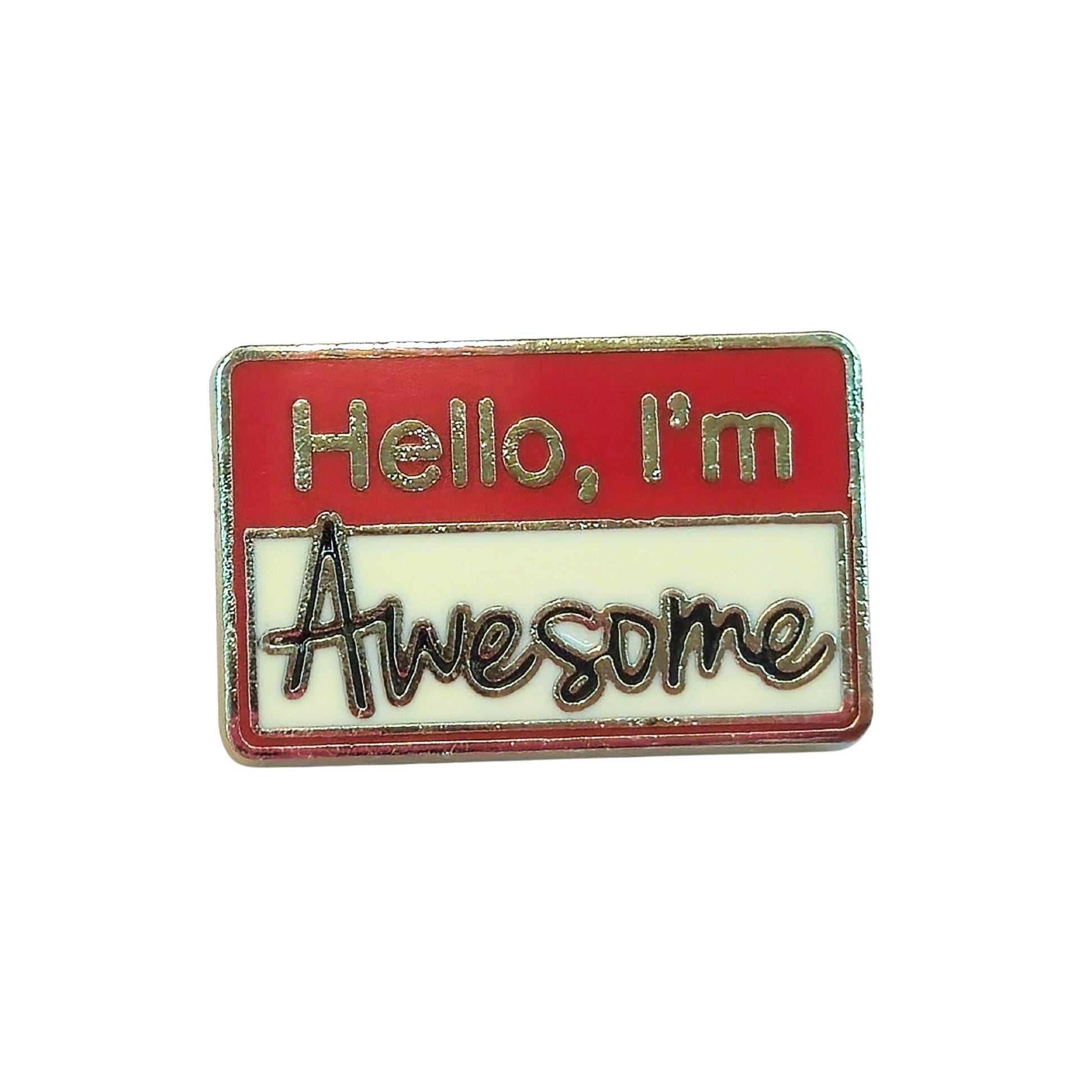 Make your presence known! This striking enamel pin looks like a name tag, boldly stating "Hello, I'm Awesome" in a clear red and white design. It's a fantastic accessory for expressing confidence, charm, and a positive attitude. Add this fun piece to your collection and wear your awesomeness proudly!