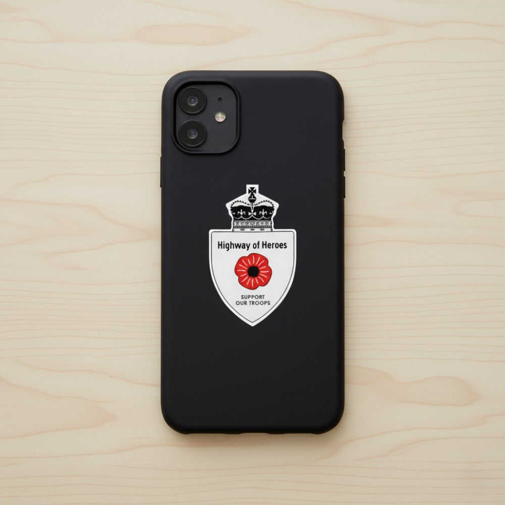 Show your support and remembrance with this poignant "Highway of Heroes" commemorative vinyl sticker. Designed in the style of the iconic Ontario King's Highway route marker, this sticker features the royal crown and shield, honouring the stretch of Highway 401 between CFB Trenton and the Coroner's office in Toronto.