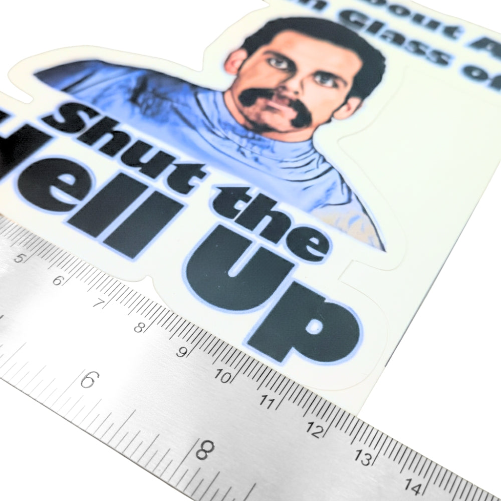 Iconic Quote: Features a bold illustration of Hal, the angry orderly, alongside his legendary line: "How About A Warm Glass of Shut the Hell Up." A must-have for any fan of the Adam Sandler classic!
