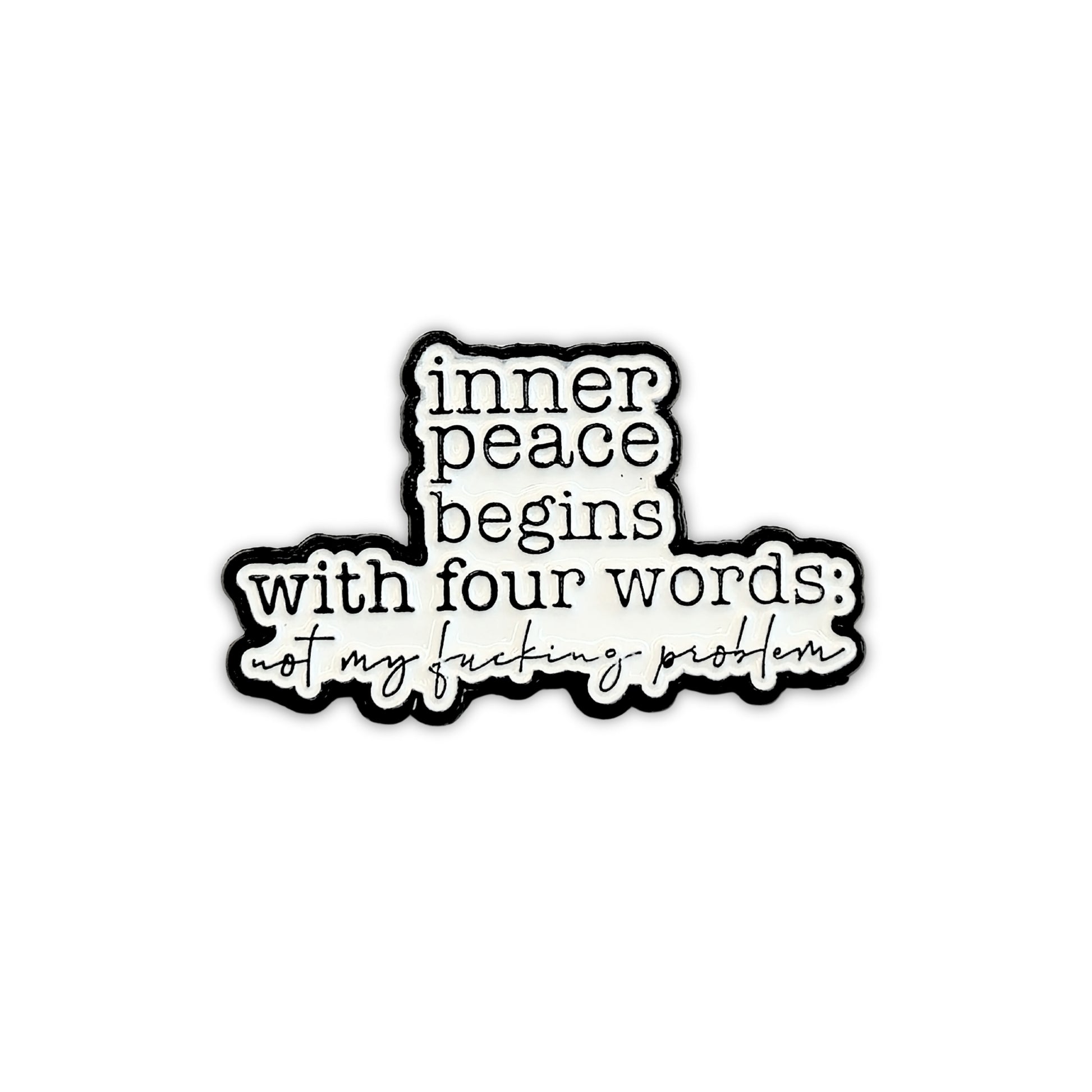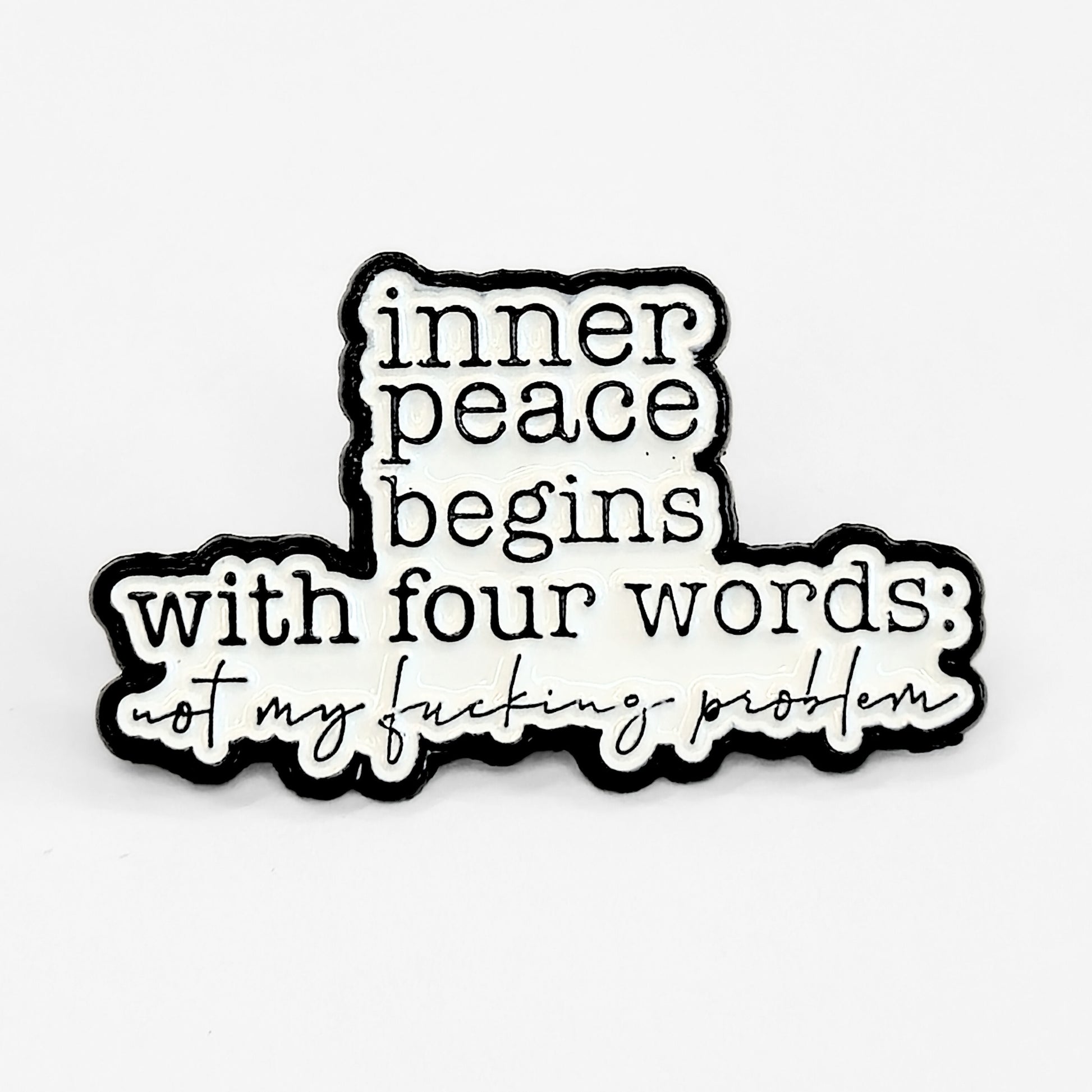 In a busy world, sometimes inner peace requires a blunt approach. This powerful "Inner Peace Begins With Four Words: Not My F***ing Problem" enamel pin delivers that message with a refreshing dose of candour. It’s a fantastic accessory for advocating for your own mental wellness, communicating your limits, and reminding yourself that not everything needs to be your concern. A unique gift for empaths, over-thinkers, or anyone who appreciates directness and a good laugh about self-preservation.