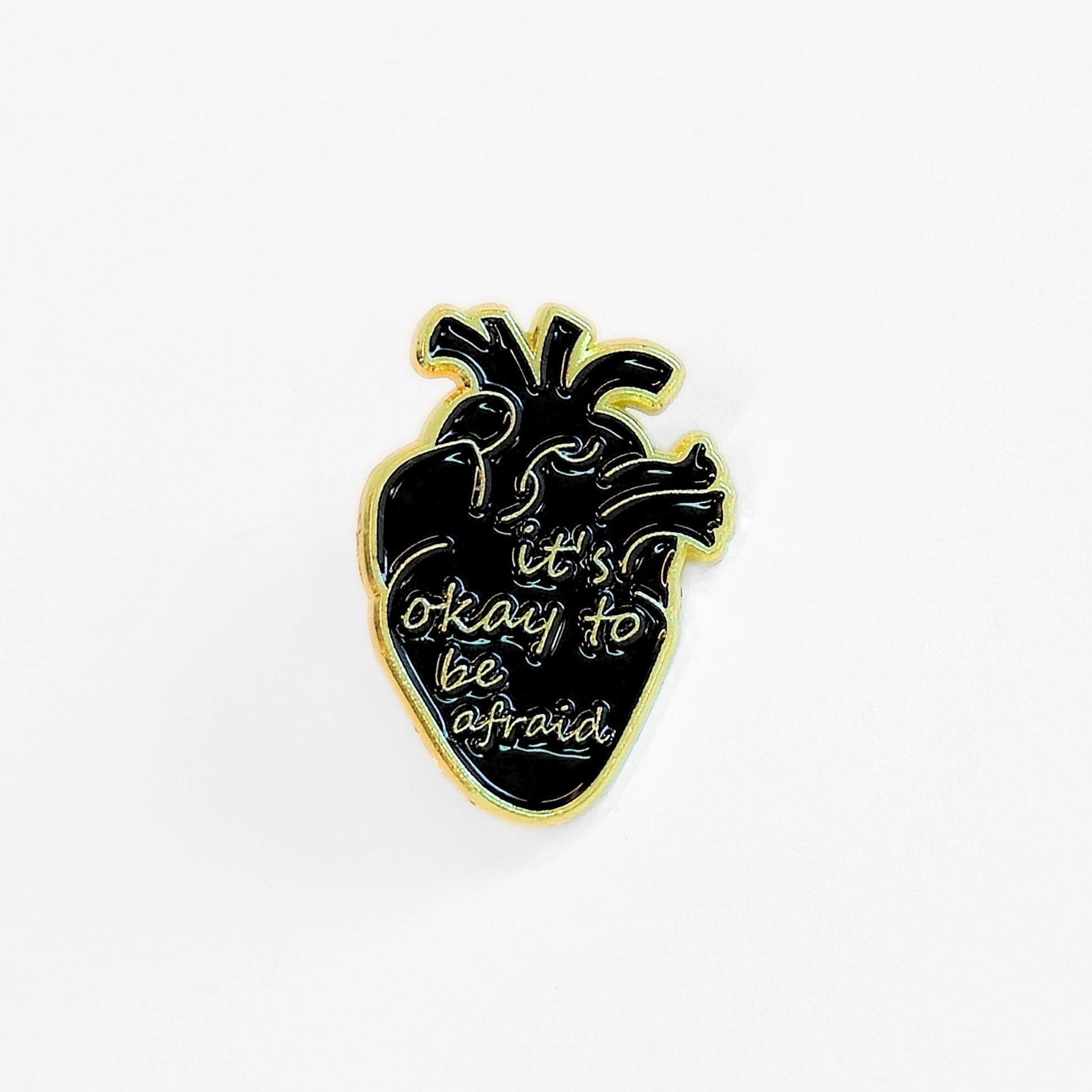 In a world that often asks for unwavering bravery, this unique anatomical heart enamel pin offers a crucial message of acceptance: "it's okay to be afraid." Its elegant black and gold design makes a sophisticated statement while providing a gentle reminder that acknowledging fear is the first step towards courage. Ideal for mental wellness advocates, or as a supportive gift for a friend navigating tough times.