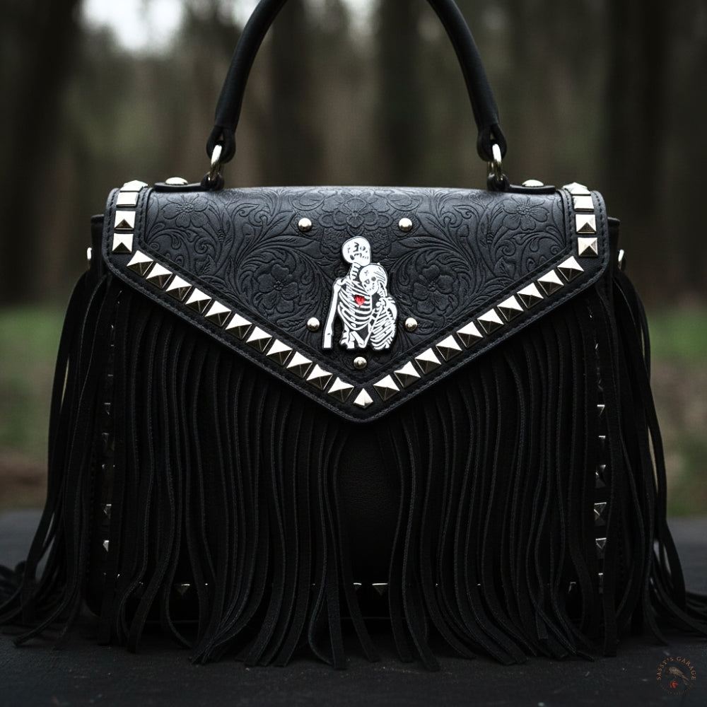This one-inch, high-quality enamel pin features two skeletons in a tender embrace, with a vibrant red heart shining brightly in the centre. The classic black and white design makes a bold statement, while the central heart adds a poignant splash of colour, symbolizing undying affection.