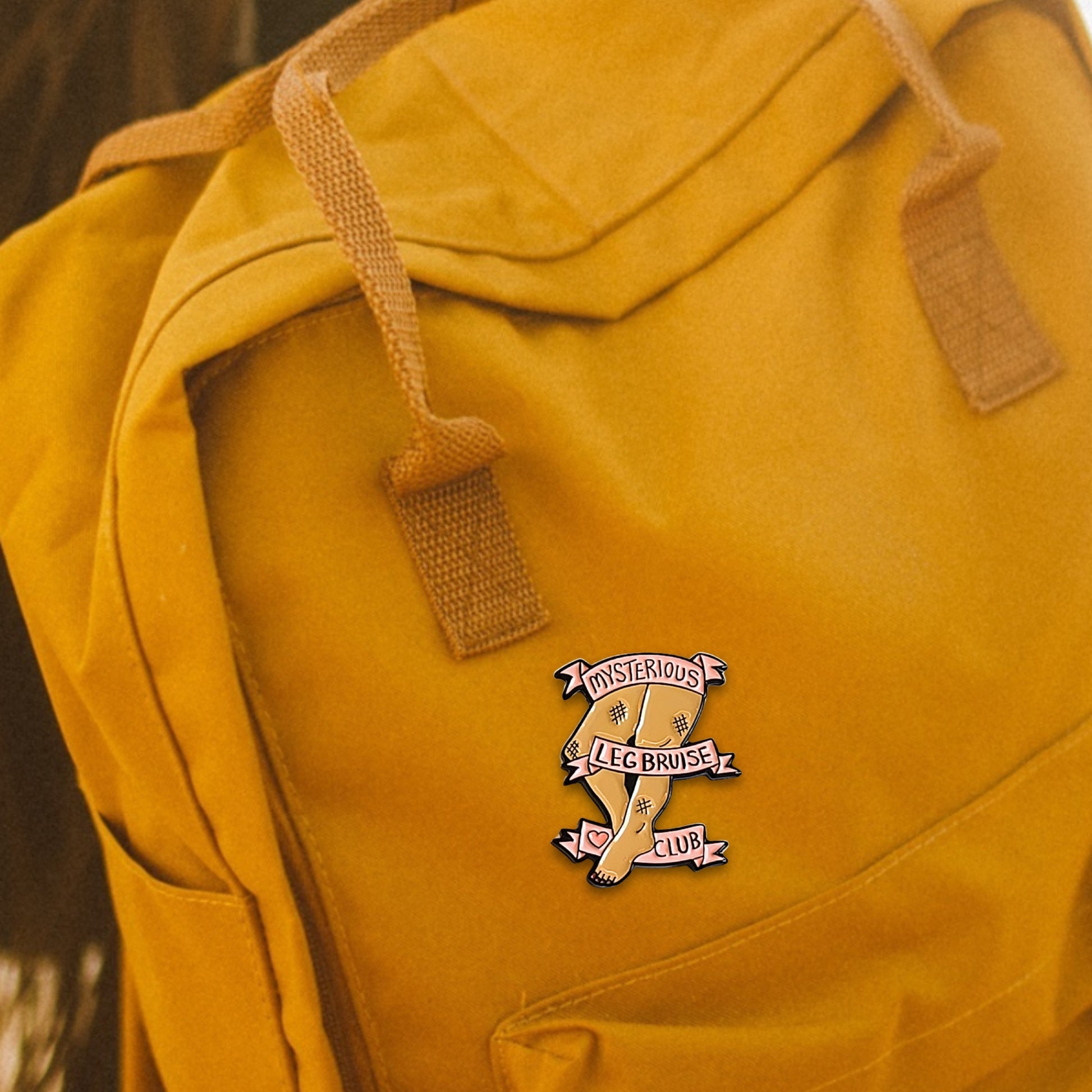You're not alone in the mystery! Join the exclusive "MYSTERIOUS LEG BRUISE CLUB" with this wonderfully relatable enamel pin. Featuring a charming pair of legs wrapped in a pink banner, complete with little "bruise" hashes and a heart, it's a playful nod to those unexplained bumps and marks that just appear. A perfect accessory for anyone who frequently asks, "Where did that come from?!" Pin it on your jacket, tote bag, or wherever you want to share a knowing chuckle.