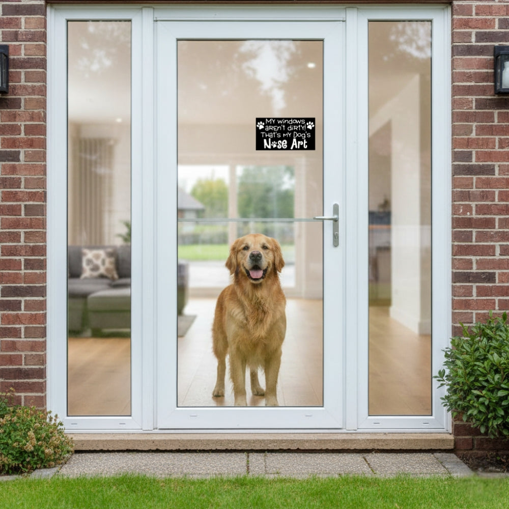 If your dog leaves a unique, damp signature on every window, this is the sticker for you! This hilarious "My Windows Aren't Dirty! That's My Dog's Nose Art" vinyl decal celebrates the messy, loving reality of being a dog owner. Featuring cute paw prints and bold lettering, it's the perfect way to let guests and fellow drivers know where your priorities lie: with your furry best friend, not spotless glass!