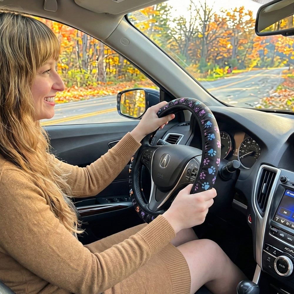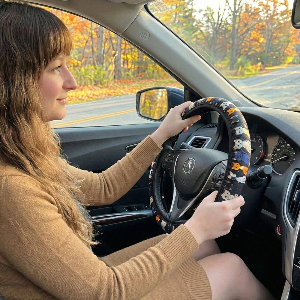 Bringing a touch of personality to your vehicle's interior, it's the perfect way for pet enthusiasts to showcase their passion while keeping their hands comfortable on the wheel, making every trip feel a bit more like home.