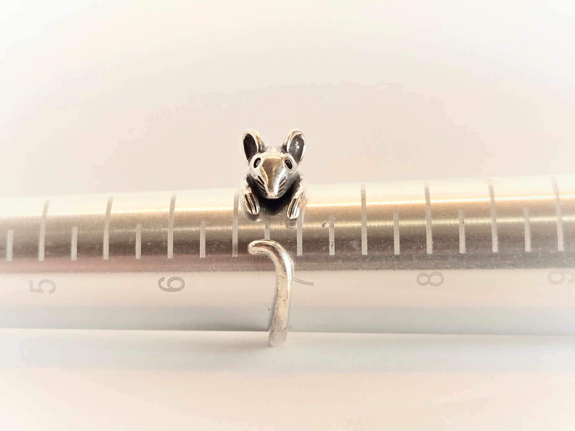 This cute silver alloy rat ring is a must-have for any rodent lover! With an adjustable cuff band, it is perfect for any finger. Add a touch of quirkiness to your style and show off your love for rats with this adorable ring.