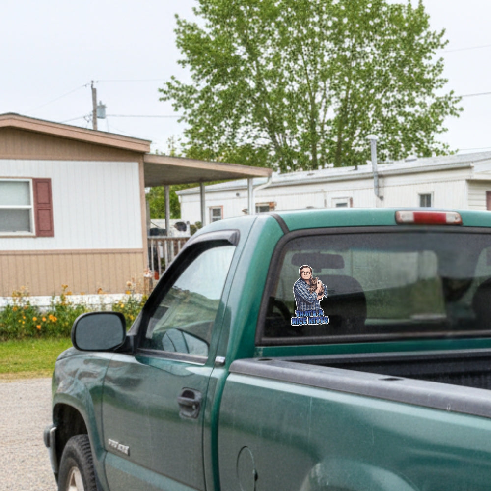 Get ready to show off your love for Sunnyvale's most famous, cat-loving resident with this Trailer Park Boys sticker! Featuring the one and only Bubbles cradling one of his beloved kitties, this durable vinyl decal perfectly captures his iconic catchphrase: "That's a Nice Kitty."