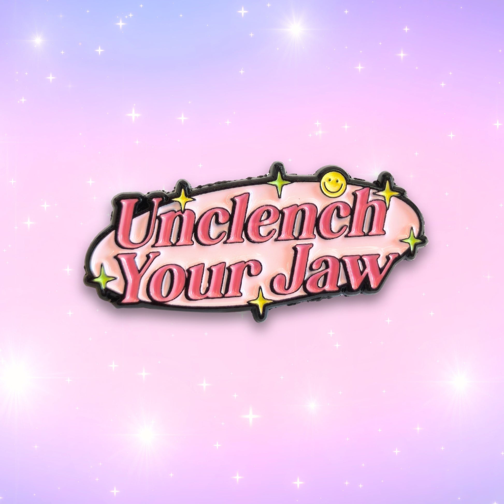 Feeling the tension creep in? This adorable "Unclench Your Jaw" enamel pin is here to help! With its sweet pink background, bold black lettering, and cheerful star and smiley details, it serves as a fun and effective prompt to practice mindfulness and physical relaxation. It's a wonderful accessory for anyone navigating a busy schedule or simply striving for more calm in their day. A thoughtful gift for a friend or colleague who might need a reminder to de-stress.