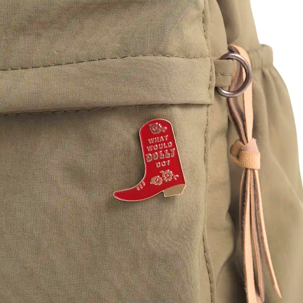 Get inspired by the legendary Dolly Parton with our "What Would Dolly Do?" cowgirl boot shaped pin. Channel her courage, kindness, and creativity with this collectible pin. Perfect for any fan or anyone who needs a little extra inspiration in their life!